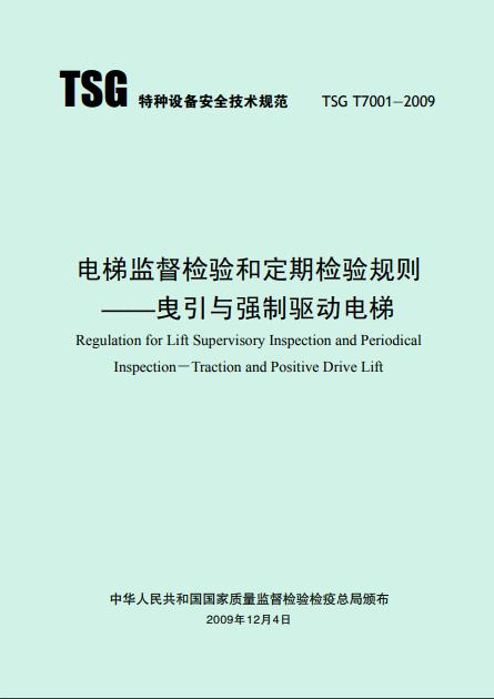 《電梯監(jiān)督檢驗(yàn)和定期檢驗(yàn)規(guī)則——曳引與強(qiáng)制驅(qū)動(dòng)電梯 TSG T7001—2009》質(zhì)量監(jiān)督檢驗(yàn)檢疫總局