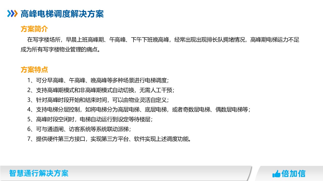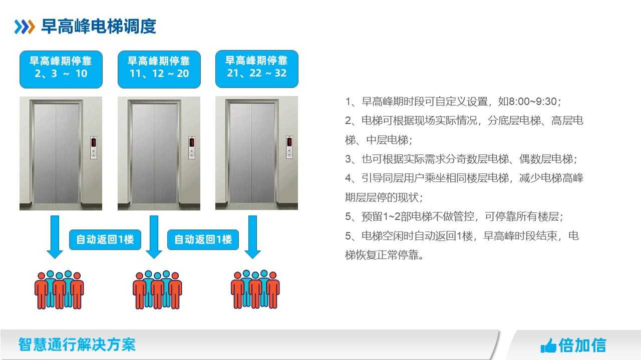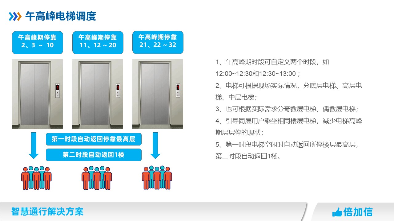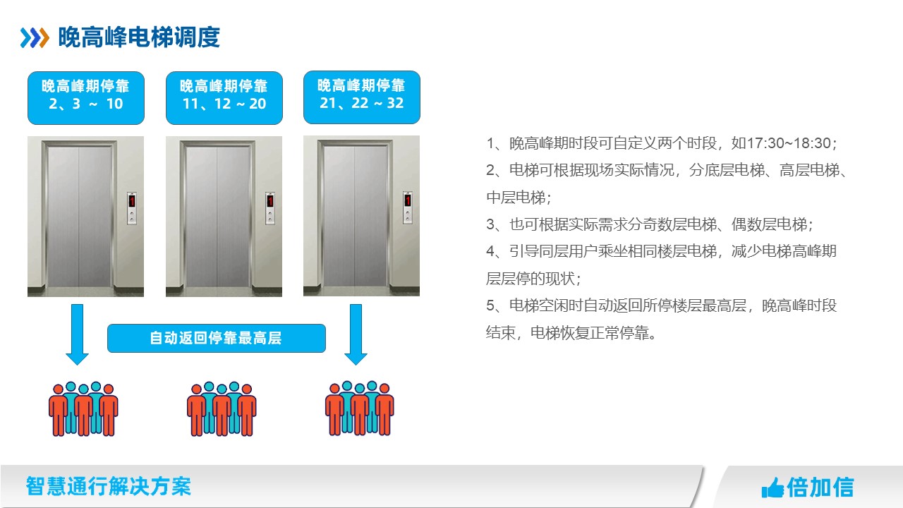 4、引導(dǎo)同層用戶(hù)乘坐相同樓層電梯,減少電梯高峰期層層停的現(xiàn)狀;