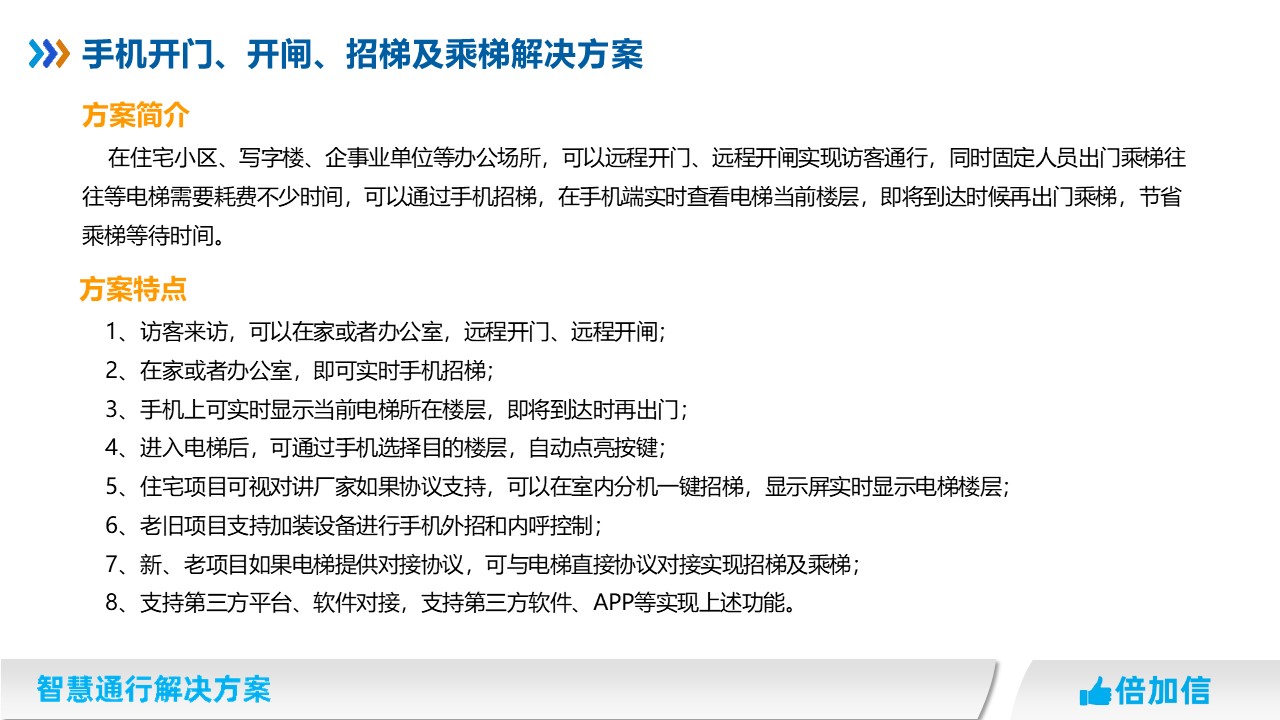 7、新、老項(xiàng)目如果電梯提供對(duì)接協(xié)議,可與電梯直接協(xié)議對(duì)接實(shí)現(xiàn)招梯及乘梯;