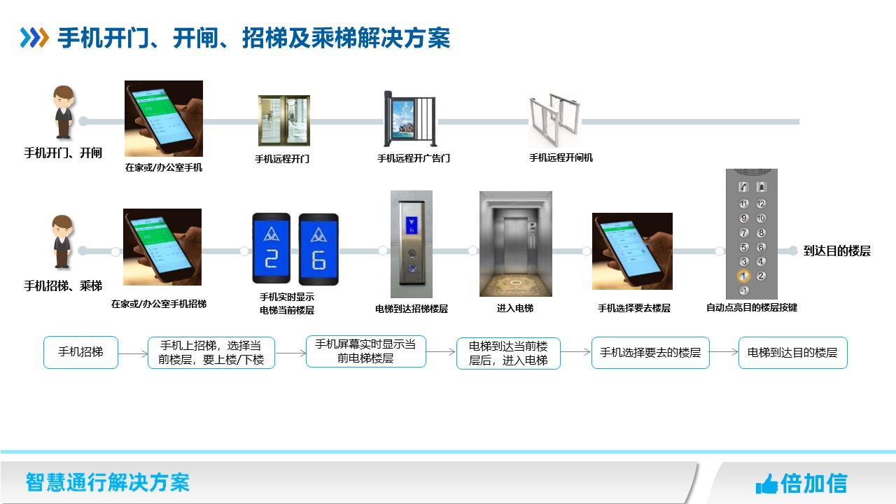 在住宅小區(qū)、寫(xiě)字樓、企事業(yè)單位等辦公場(chǎng)所,可以遠(yuǎn)程開(kāi)門、遠(yuǎn)程開(kāi)閘實(shí)現(xiàn)訪客通行,同時(shí)固定人員出門乘梯往往等電梯需要耗費(fèi)不少時(shí)間,可以通過(guò)手機(jī)招梯,在手機(jī)端實(shí)時(shí)查看電梯當(dāng)前樓層,即將到達(dá)時(shí)候再出門乘梯,節(jié)省乘梯等待時(shí)間。