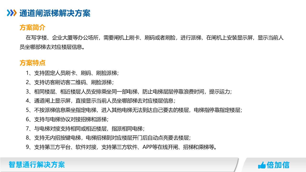 9、支持第三方平臺(tái)、軟件對接,支持第三方軟件、APP等在線開閘、招梯和乘梯等。