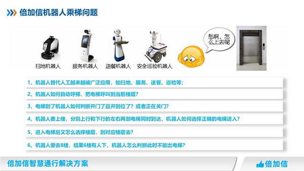 機(jī)器人倍加信梯控通過對電梯的各個部位進(jìn)行全方位的監(jiān)控,及時(shí)發(fā)現(xiàn)電梯故障和異常情況,并且可以快速的響應(yīng)和處理,從而提高了電梯的安全性和可靠性。