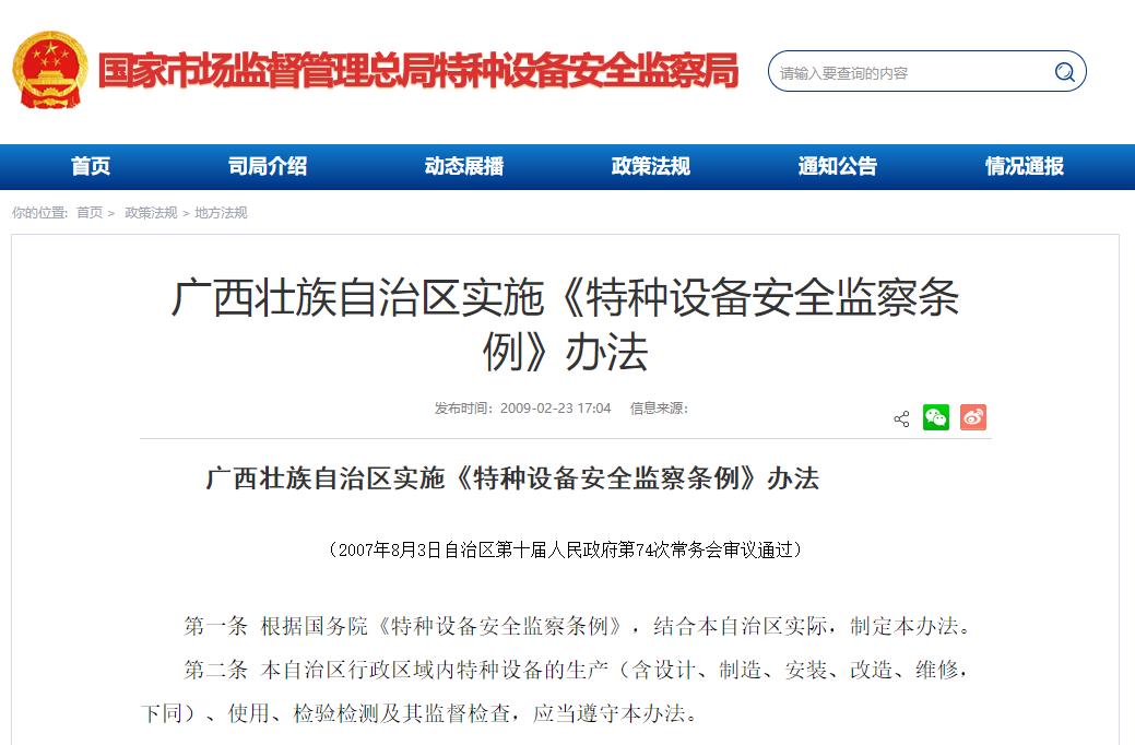 廣西壯族自治區(qū)實施《特種設備安全監(jiān)察條例》辦法